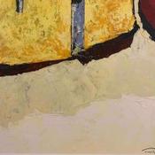 The artist used Oil, Cardboard media on Cardboard to create this Abstract, Small size painting.