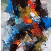 The artist used Oil medium on Canvas to create this Abstract, Small size painting.
