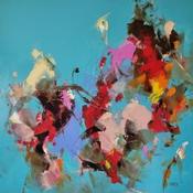 The artist used Oil medium on Canvas to create this Abstract, Large size painting.