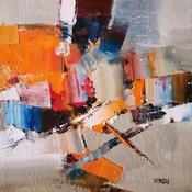 The artist used Oil medium on Canvas to create this Abstract, Small size painting.