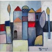 This unique and original contemporary artwork "AM34 Village aux cyprès" on the subject of Landscapes has been created by the contemporary artist Burgi Roger.