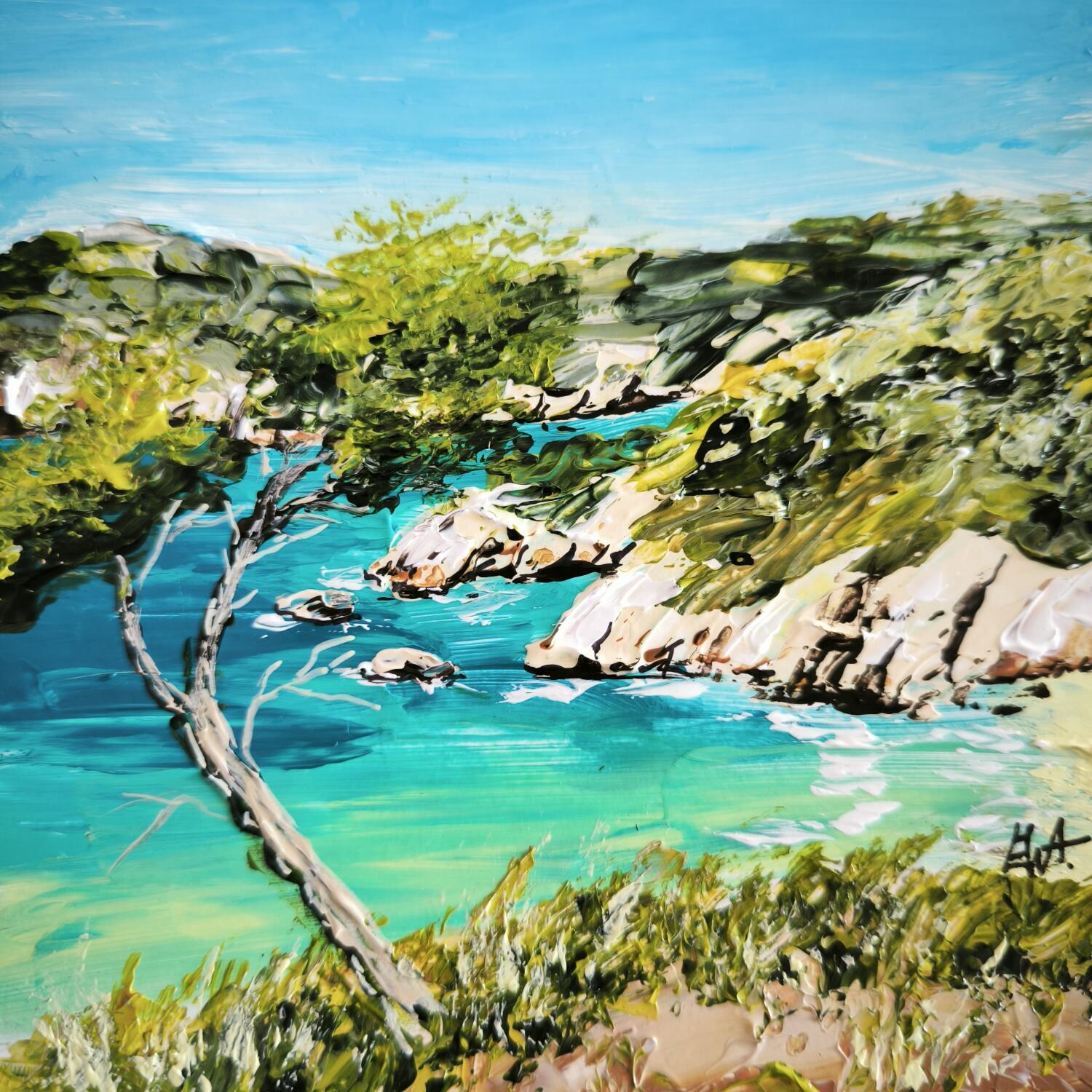 This unique and original contemporary artwork "Une belle journée !" on the subject of Landscapes has been created by the contemporary artist Rey Ewa.