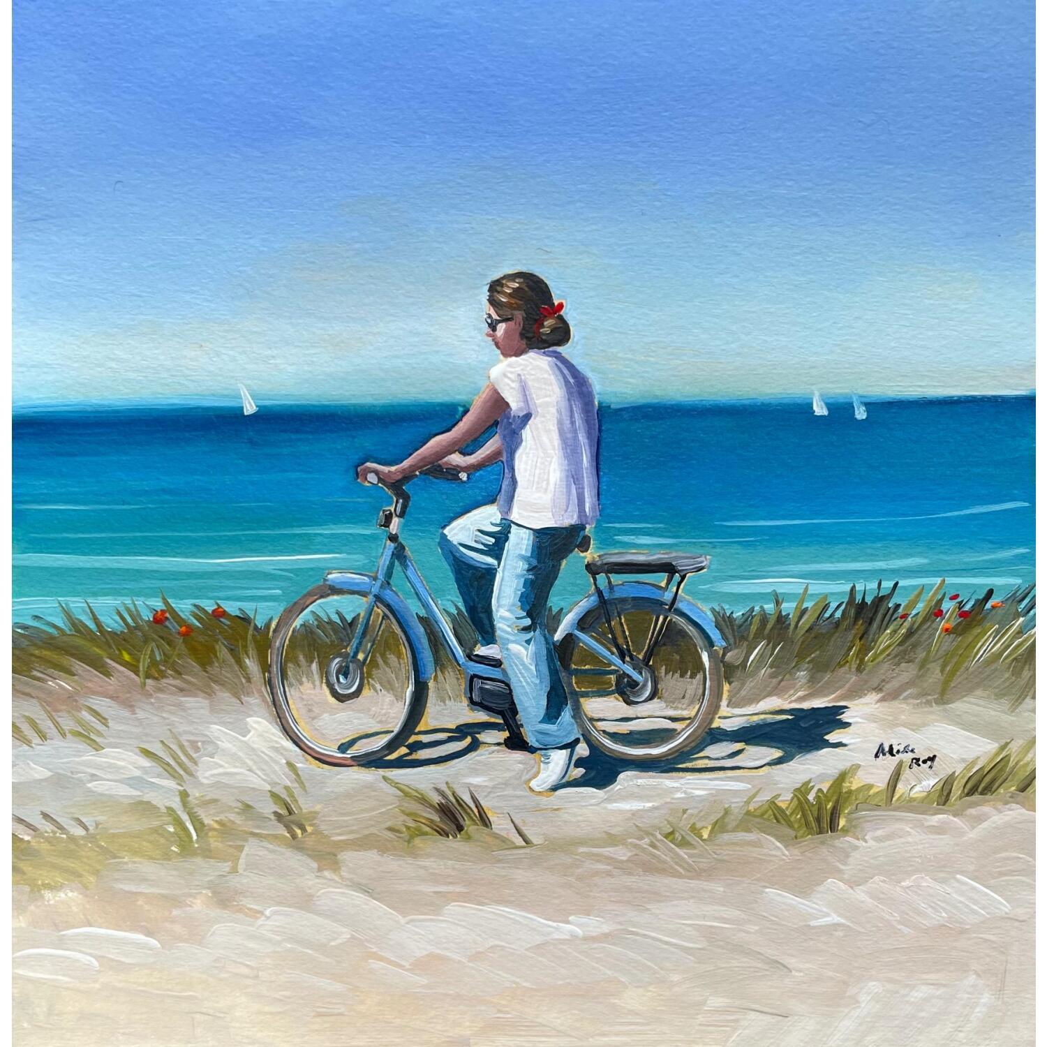 This unique and original contemporary artwork "F3 la fille à vélo 10009-21423-20250628-15" was created by contemporary artist Alice Roy.
