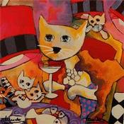 This unique and original contemporary artwork "Chats et poissons" on the subject of Animals has been created by the contemporary artist Fauve.