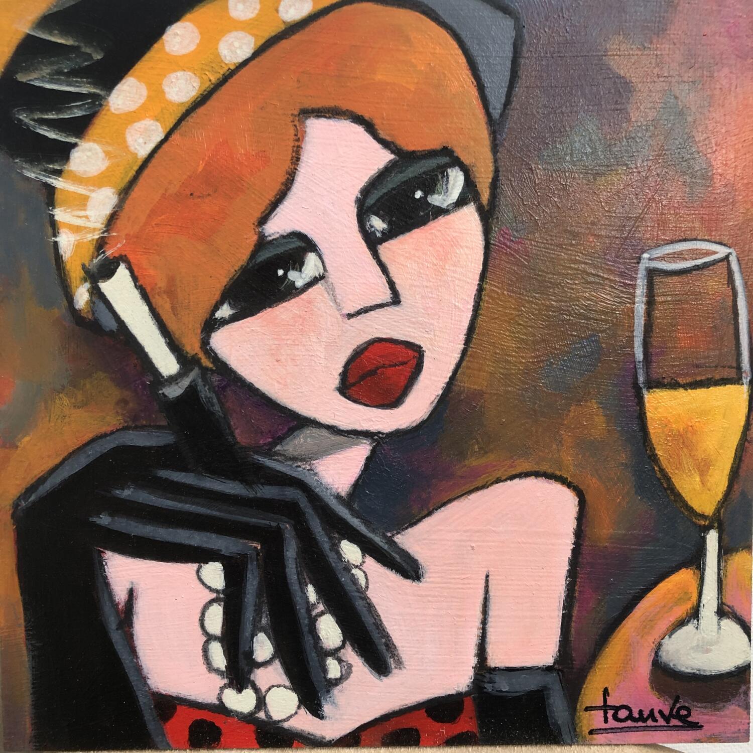 Ever since her childhood in Roanne (Loire), Fauve has drawn and painted. She taught herself by taking inspiration from works of art history. In adulthood, she became a secretary without, however, abandoning her true passion. She continued painting even while working. She began with watercolours and worked for 8 years with Georges Colognon, a painter from Roanne. In 1997, she felt the need to work with other medium (ink, acrylic, oil), collage and mixed media and was taught by the painter Georges Roget at "Turne à Mignien", the seat of the association "Les Amis des Arts de Roanne." In 2000 she left her salaried activity and devoted herself entirely to her art, opening the "Fauve Studio" in Roanne and then moving it in 2005 to SaintHaon-le-Châtel (Loire). Anxious to share and pass on her knowledge, Fauve teaches painting there.