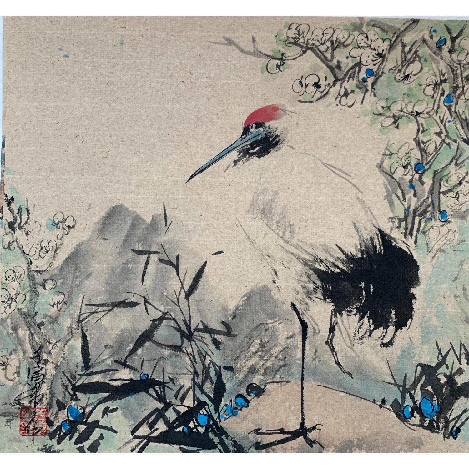 This unique and original contemporary artwork "Crane" on the subject of Animals has been created by the contemporary artist Yu Huan Huan.