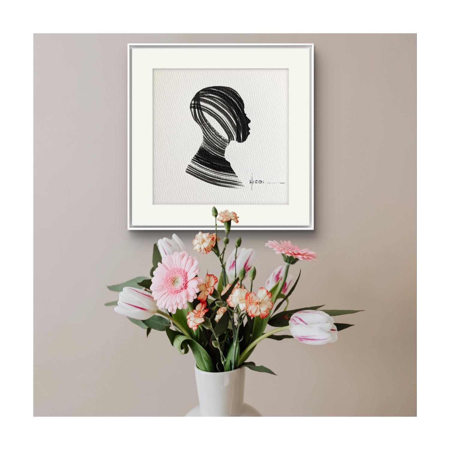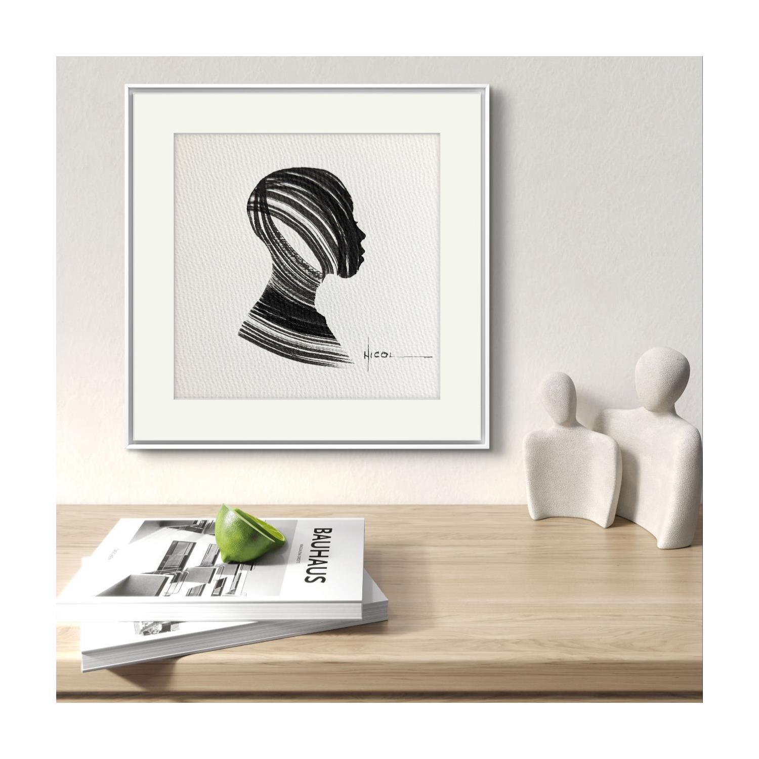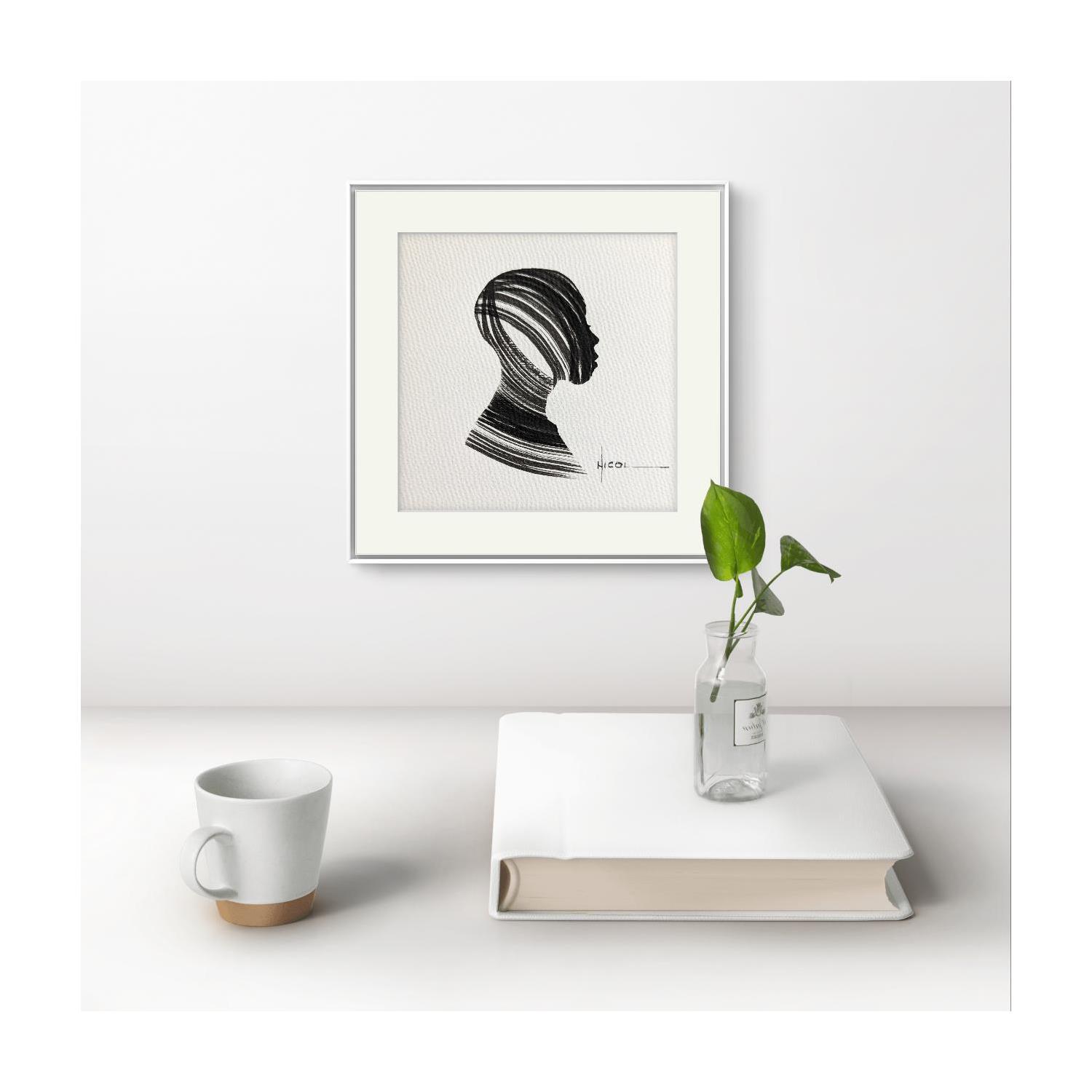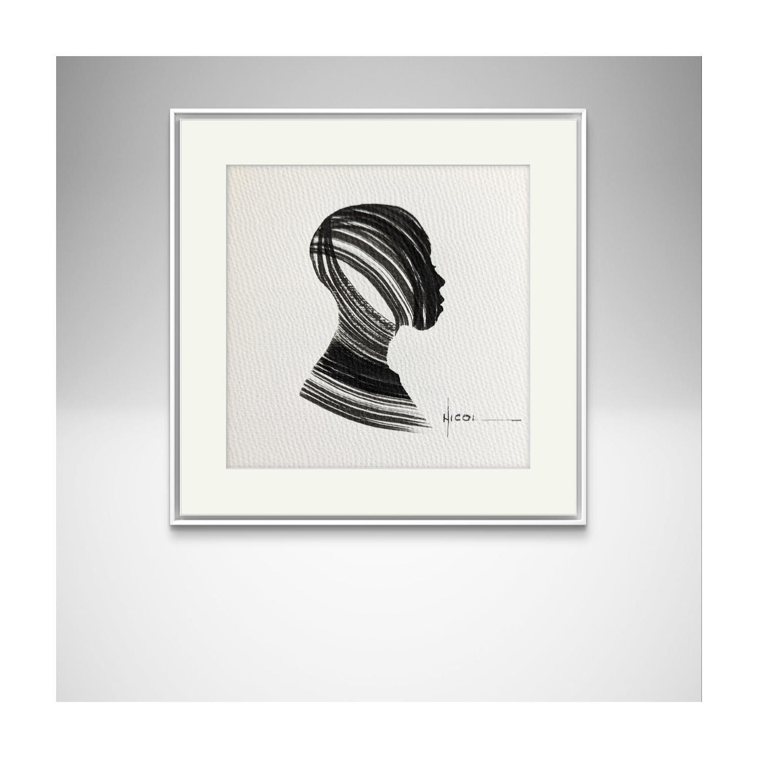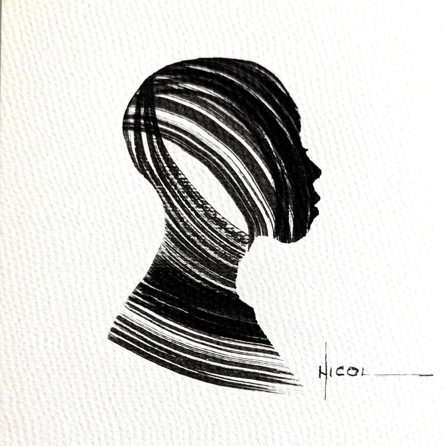 Painting Time CCCXIII by Nicol | Painting Figurative Portrait Minimalist Black & White Ink