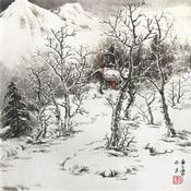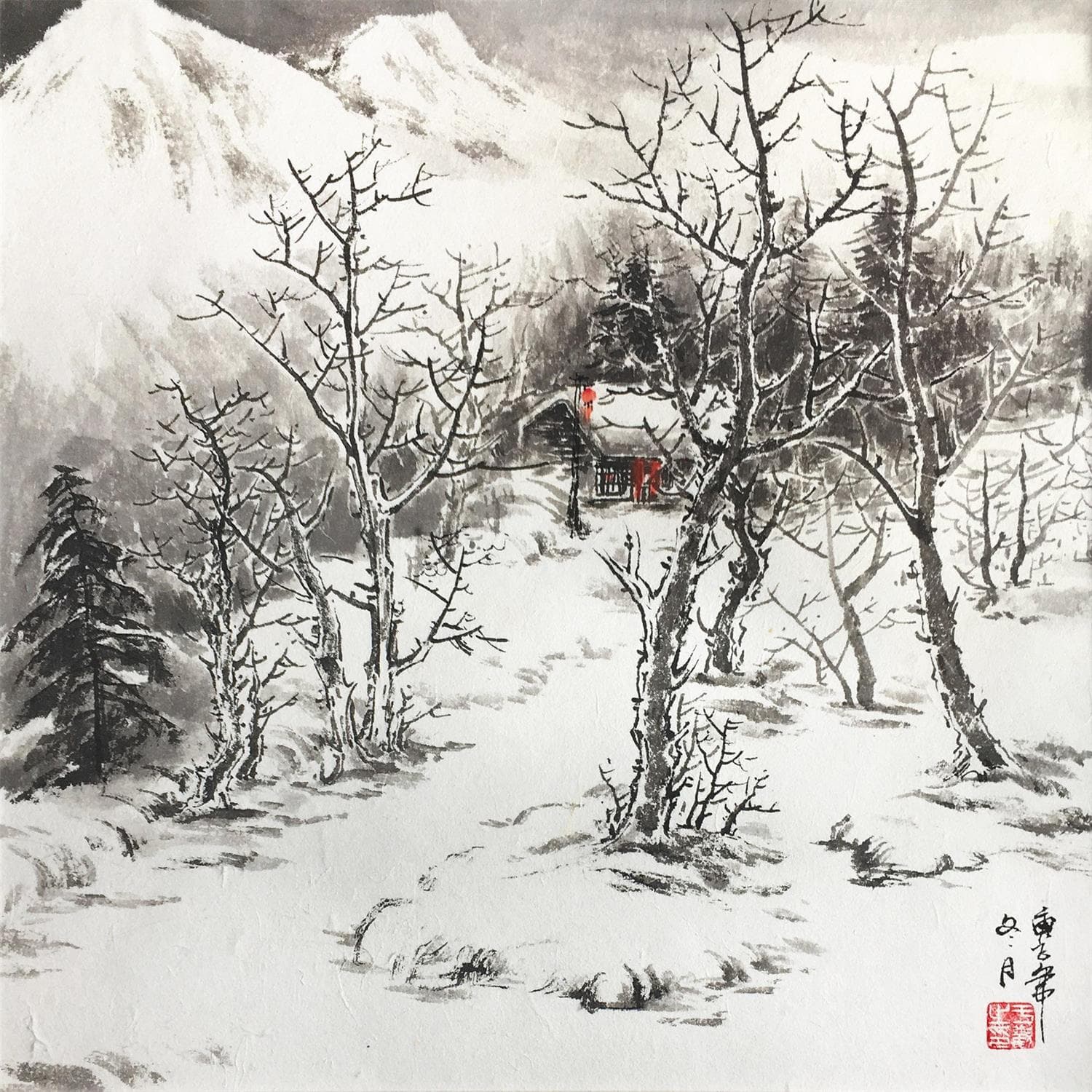 Family of snow mountainsPainting Family of snow mountains by Yu Huan Huan | Painting Figurative Landscapes Black & White
