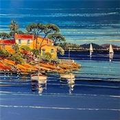 This unique and original contemporary artwork "Crique à Cap d'Antibes" on the subjects of Landscapes, Marine has been created by the contemporary artist Corbière Liisa.