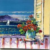 This unique and original contemporary artwork "Fenêtre avec vue" on the subject of Landscapes has been created by the contemporary artist Corbière Liisa.