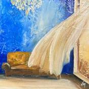 The French artist Virginie Mézan de Malartic qualifies her creation as "painting of beings" as the contrasts modelled on man occupy an important position. Exploring natural or artificial light, playing with areas of shadow and light, allows the artist to update a panel of emotions and feelings. Fly-on-the-wall, the characters that make up her paintings find themselves frozen in a moment, as if suspended outside of time, interrupting their course and leaving a place for reflection and introspection. Virginie Mézan de Malartic invokes in her practice a form of verticality that symbolises the necessity for everyone to distance themselves from their environment, their existence and their world.