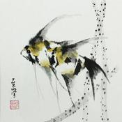 Painting Angelfish by Du Mingxuan | Painting Figurative Animals Watercolor Ink