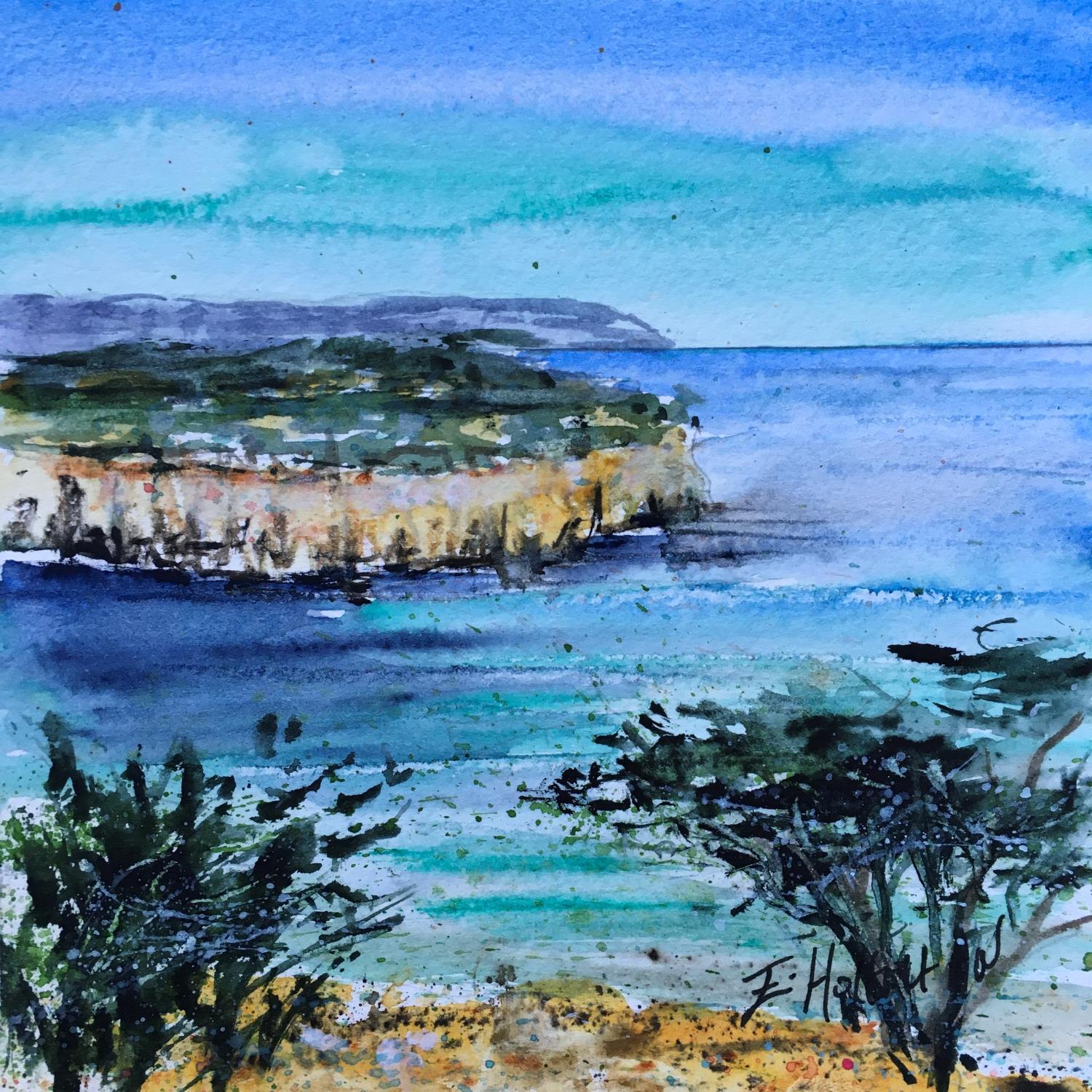 The artist used the watercolor technique to create this small-format painting on paper in the figurative style on the theme of the sea.