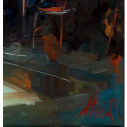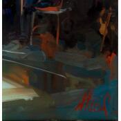 The artist used Oil medium on Canvas to create this Impressionism, Large size painting.