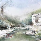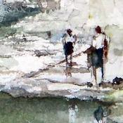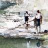 Pêche en rivière - La TourainePainting Pêche en rivière - La Touraine by Gutierrez | Painting Impressionism Landscapes Urban Watercolor
