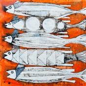 Orange fishPainting Orange fish by Colombo Cécile | Painting Naive art Animals Watercolor Wood Acrylic Gluing Ink Pastel