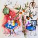 The artist used Watercolor, Acrylic, Gluing, Ink, Pastel media on Canvas to create this Naive art, Small size painting.