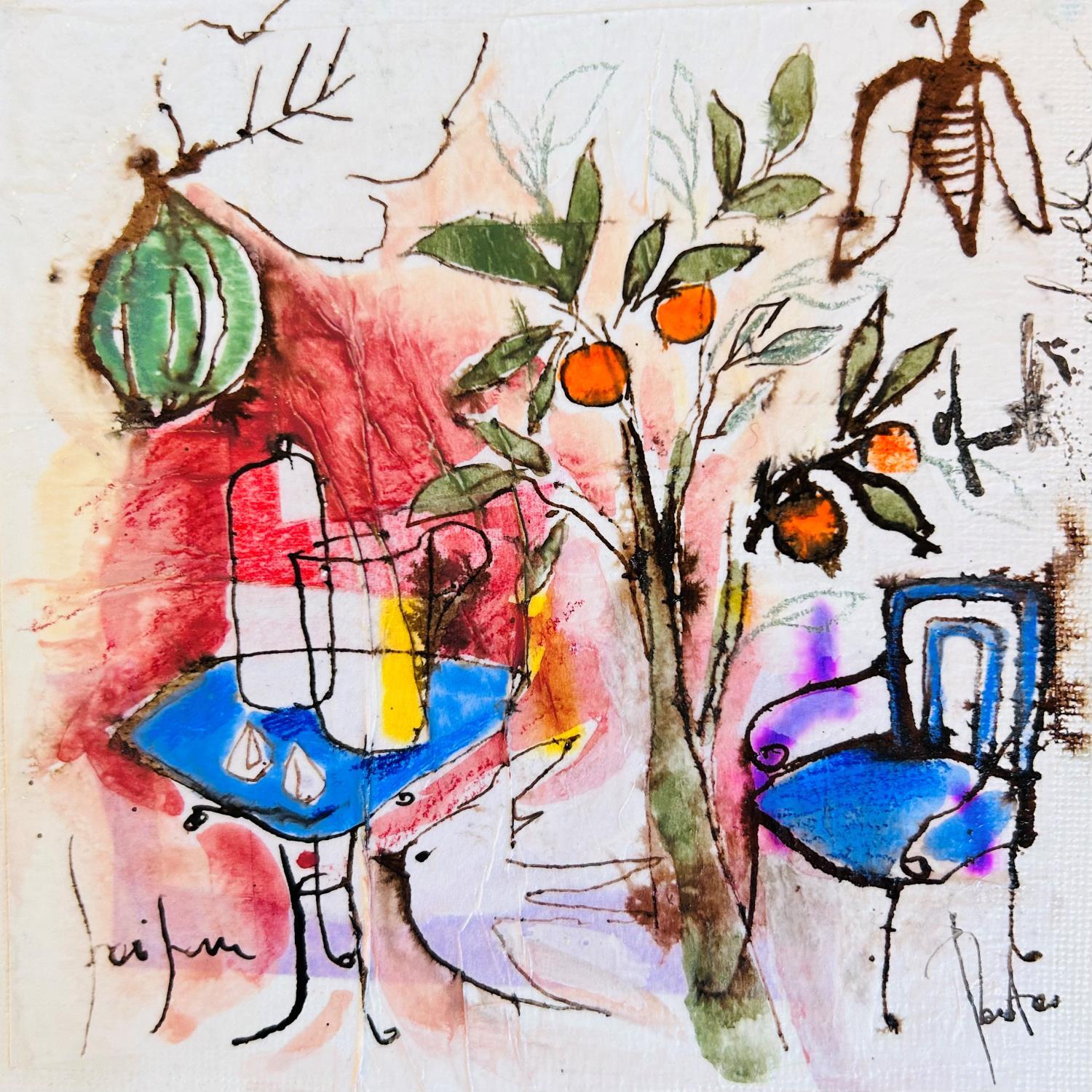 This unique and original contemporary artwork "L' oiseau et l' abeille" on the subject of Landscapes has been created by the contemporary artist Colombo Cécile.