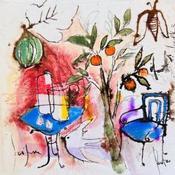 The painter Cécile Colombo was born in 1969 in Marseille. She studied Applied Art at the Beaux-Arts and then trained as a plastic artist in Architectural Environment and Urban Decoration. Her studio is located in the south of France in Gémenos.