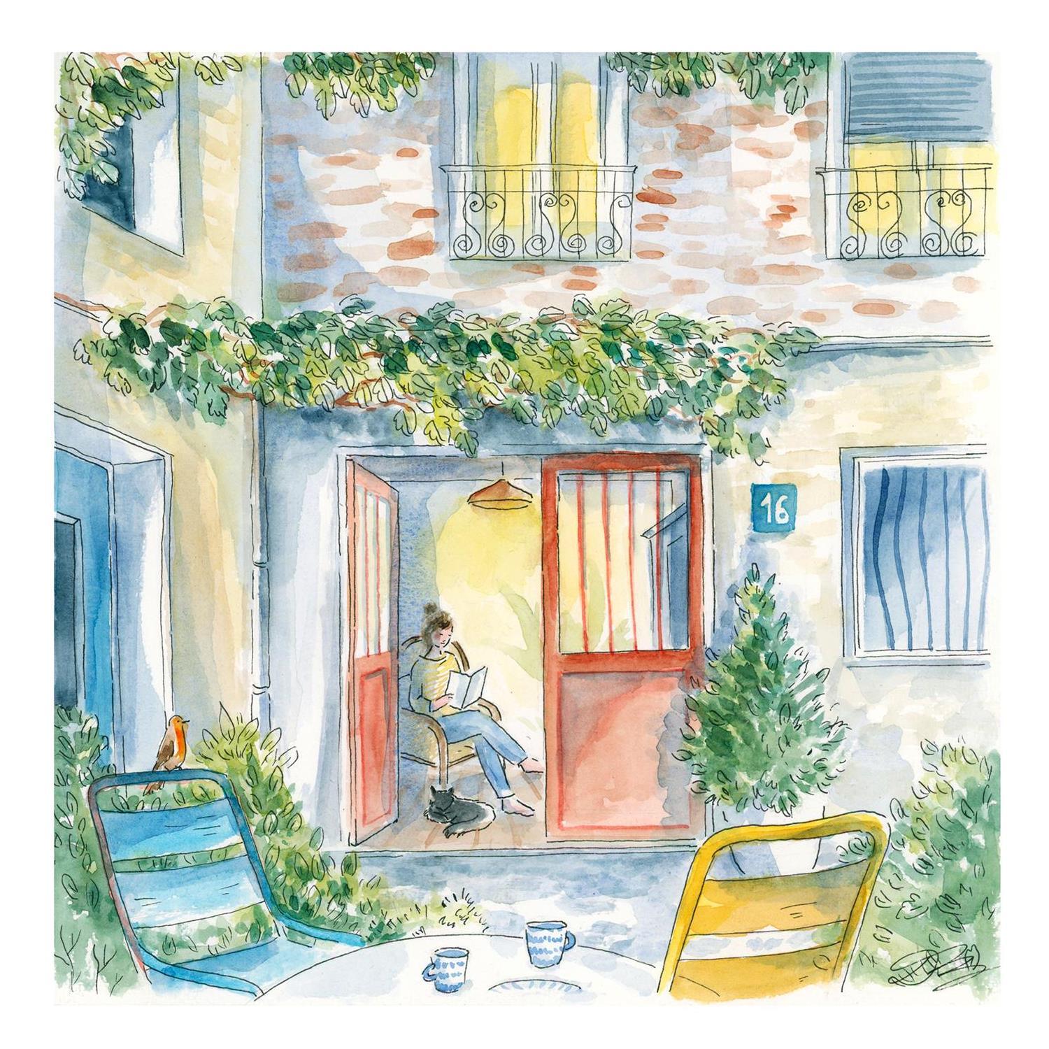 This unique and original contemporary artwork "Lecture cachée" on the subject of Life style has been created by the contemporary artist Balme Delphine.