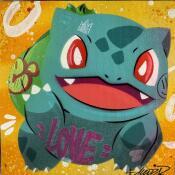 This unique and original contemporary artwork "Bulbizarre" on the subject of Pop icons has been created by the contemporary artist Lemoine Mael.