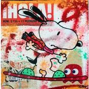 This unique and original contemporary artwork "Snoopy Snow board" on the subject of Pop icons has been created by the contemporary artist Kikayou.