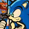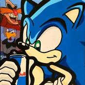 This unique and original contemporary artwork "Sonic Redbull" on the subject of Pop icons has been created by the contemporary artist Kalo.