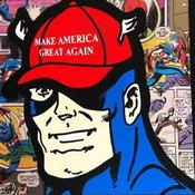 This unique and original contemporary artwork "Captain America Trump" on the subject of Pop icons has been created by the contemporary artist Kalo.