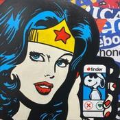 This unique and original contemporary artwork "Wonder Women Tinder" on the subject of Pop icons has been created by the contemporary artist Kalo.