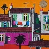 This unique and original contemporary artwork "Les jours heureux" on the subjects of Life style, Urban has been created by the contemporary artist Lovisa.