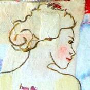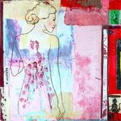 The artist used mixed media, Stamping, Ink, Acrylic, Collage d'art, Upcycling to create this small-format canvas on Wood Singular Art style painting on the theme Scenes of life.