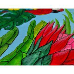 This unique and original contemporary artwork "F3 amazon" was created by contemporary artist Geiry. The artist used various techniques to create this small-format Pop art-style painting on wood.