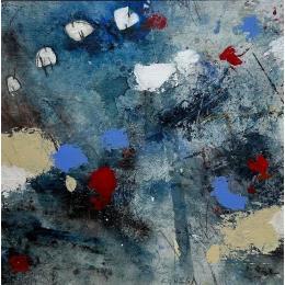 As a child, Francisco saw his mother drawing and painting and felt instinctively attracted to the arts. He joined the School of Fine Arts in Madrid, taking drawing and painting courses and some modelling and sculpture. Initially, Francisco drew in pencil, gradually moving to watercolour, which his uncle introduced to him and taught him the basics. At the time, the subjects of his works were surreal and dreamlike. He worked the drawings meticulously in pen and then added colour with watercolours. Little by little, colour became more important and the amount of drawing was reduced. Today he works exclusively with abstract forms, each freer than the last. When he was around 30 years old, Francisco settled in a small town in the Sierra de Madrid to escape the pace of the city and find peace. This new life changed his way of painting; his subjects, his colour palette, using more organic and natural textures that were closer to the earth, stones and figures he found in his surroundings.
