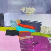 The artist used Acrylic, Gluing, Gold leaf, Paper media on Cardboard to create this Abstract, Small size painting.
