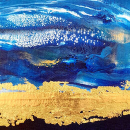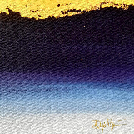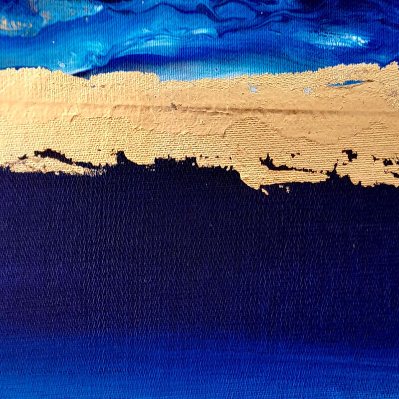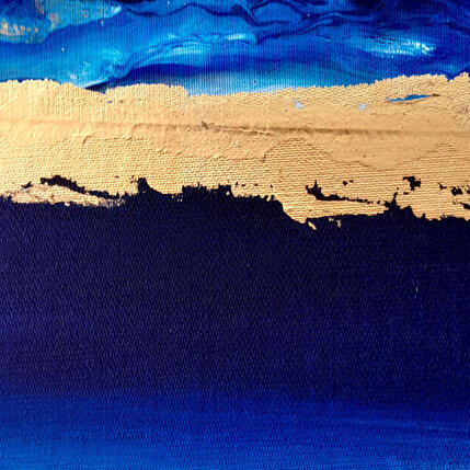 This unique and original contemporary artwork, "F4 La ligne d'or - outremer 110-20369-20260202-39," was created by the contemporary artist Roselyne Dupetitpré. The artist used acrylic paint to create this small-format abstract painting on canvas.
