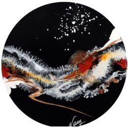 The artist used Acrylic, Ink media on Other to create this Abstract, Small size painting.