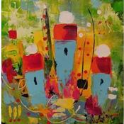 The artist used Oil medium on Canvas to create this Abstract, Small size painting.