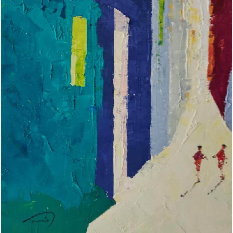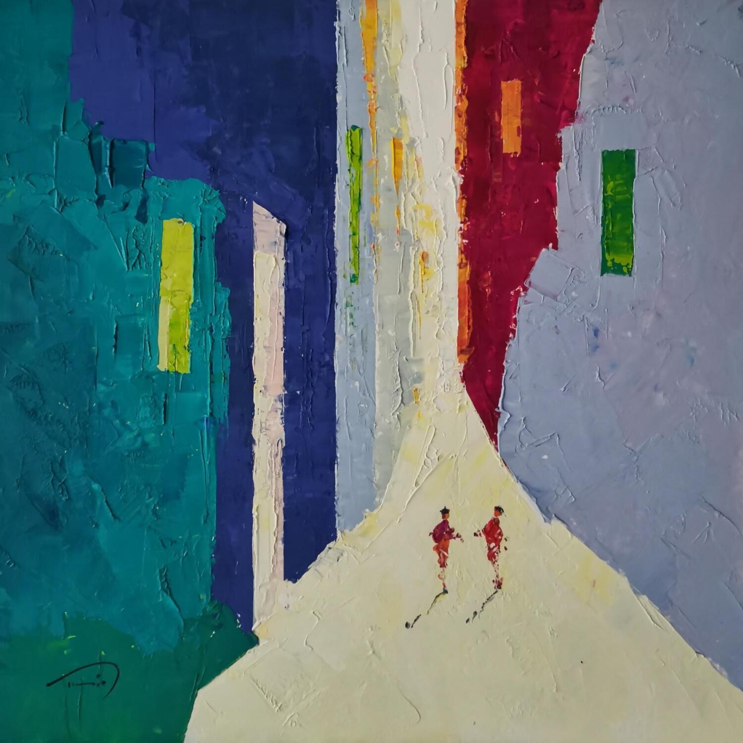 Le couple du quartierPainting Le couple du quartier by Tomàs | Painting Abstract Society Urban Oil