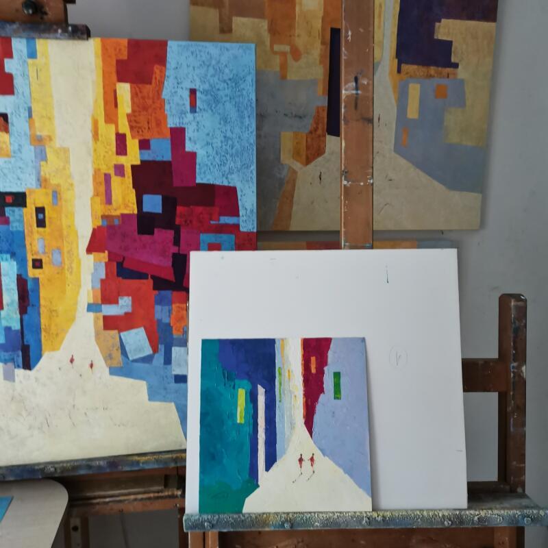 The artist used Oil medium on Paper to create this Abstract, Small size painting.