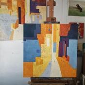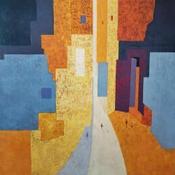 The artist used Oil medium on Canvas to create this Abstract, Large size painting.