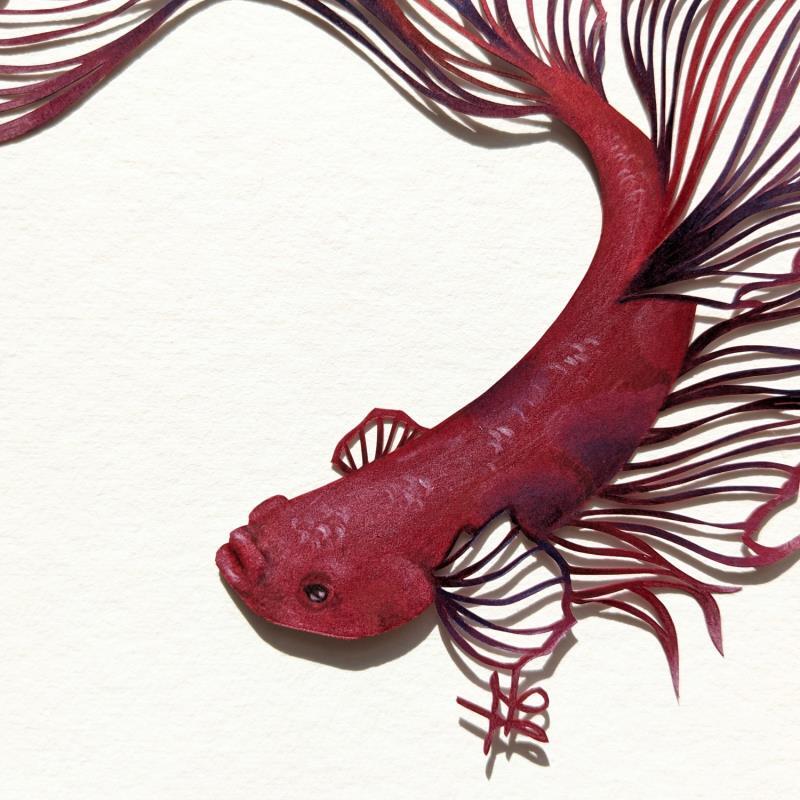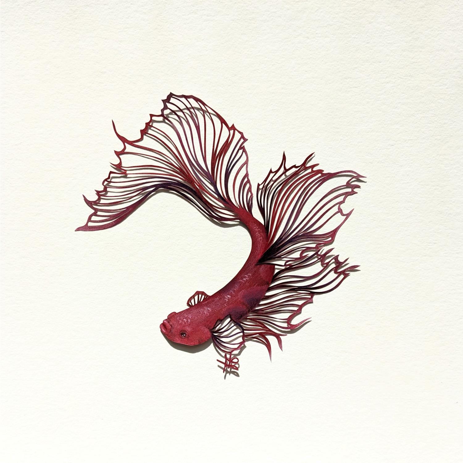 Combattant 12Painting Combattant 12 by Atalanta Vanessa | Painting Marine Nature Animals Cardboard Paper