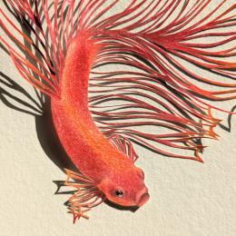 Combattant 9 Painting Combattant 9  by Atalanta Vanessa | Painting Marine Nature Animals Cardboard Paper