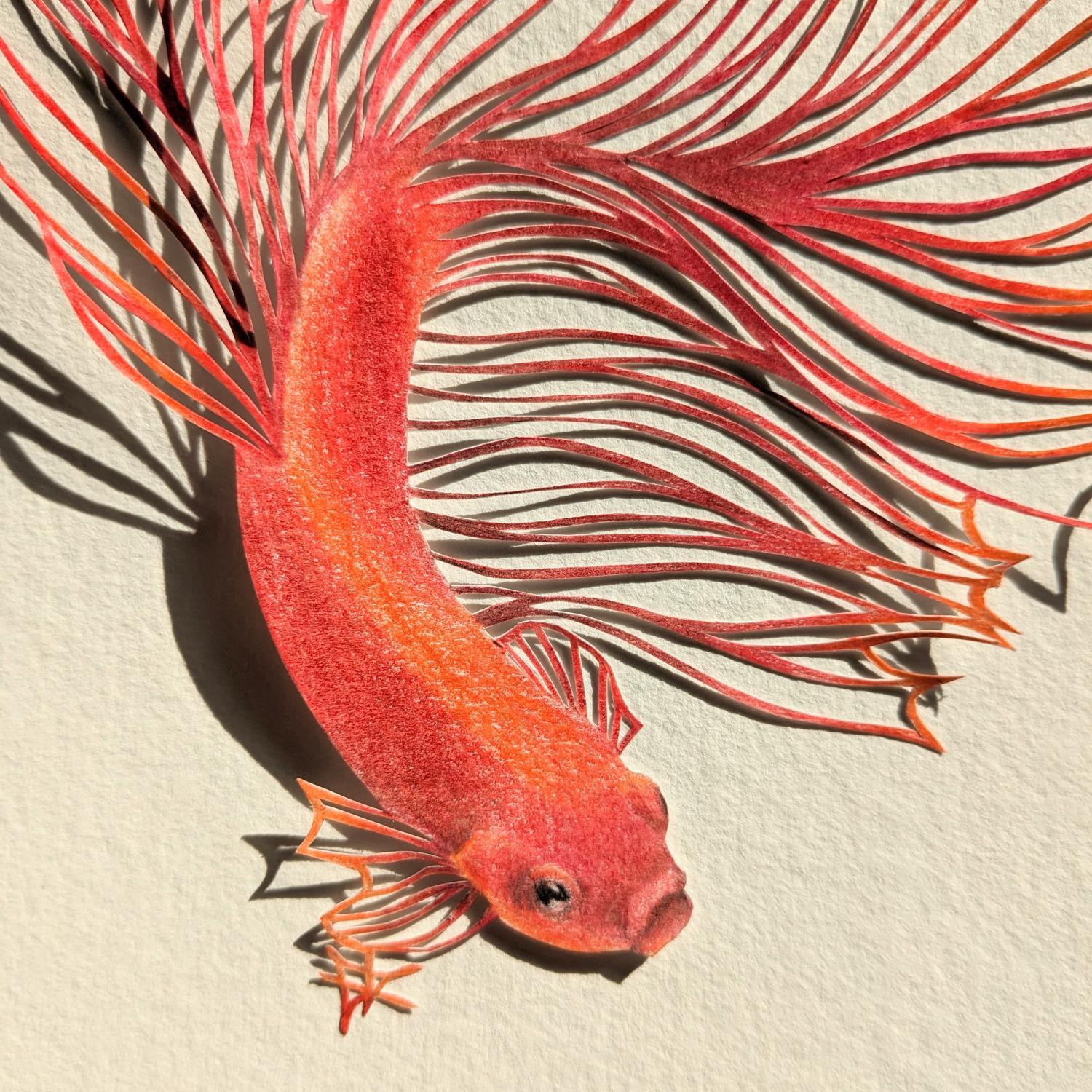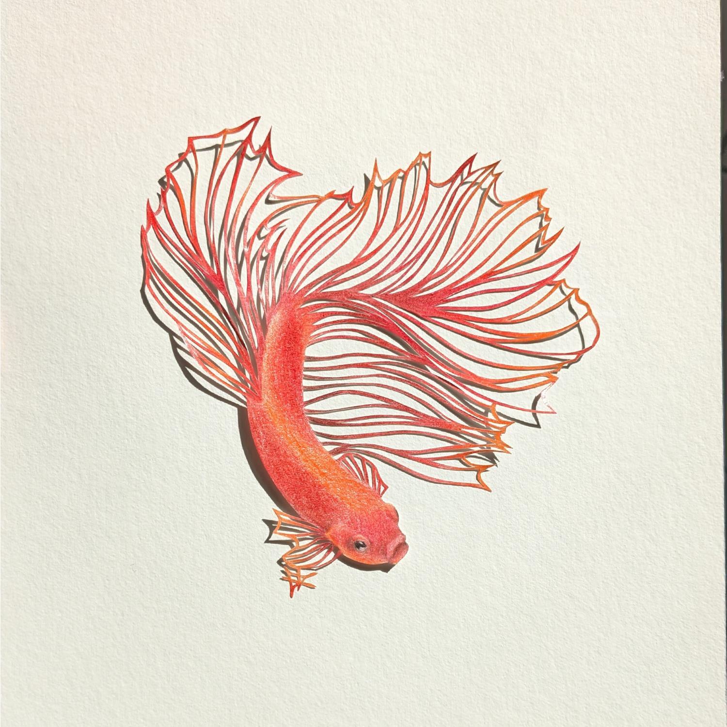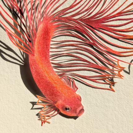 Painting Combattant 9 by Atalanta Vanessa | Painting Marine Nature Animals Cardboard Paper