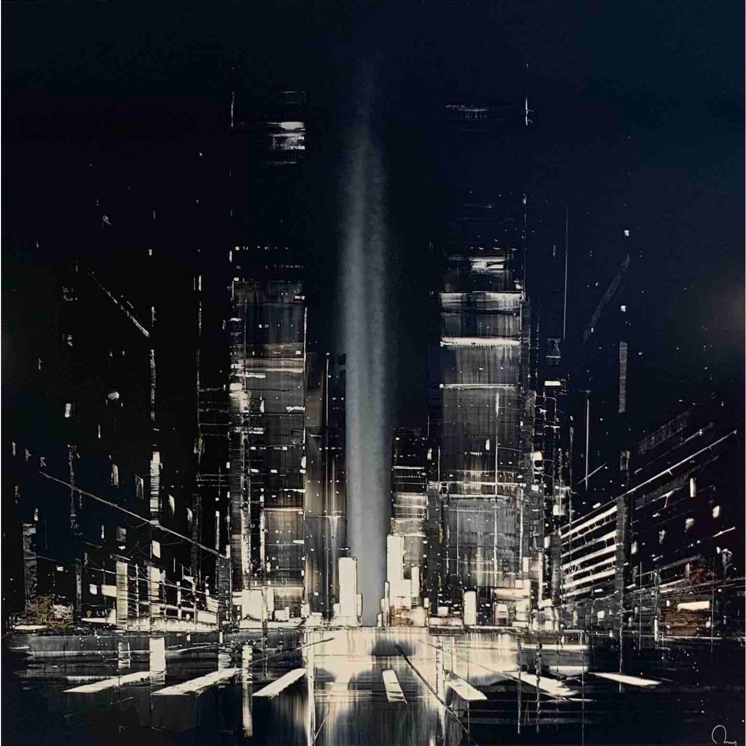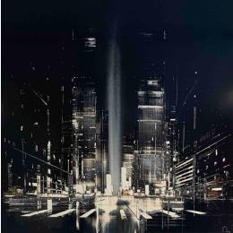 This unique and original contemporary artwork "We own the night" on the subjects of Landscapes, Urban, Minimalist has been created by the contemporary artist Rey Julien.