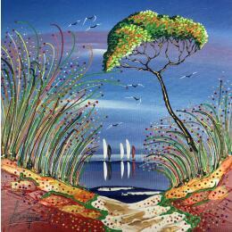 This unique and original contemporary artwork "Les bons chemins" on the subjects of Marine, Landscapes has been created by the contemporary artist Fonteyne David.