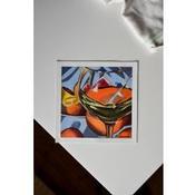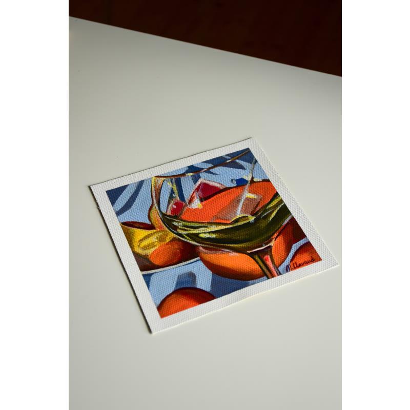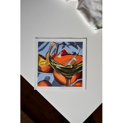 This unique and original contemporary artwork "BRUNCH" was created by contemporary artist Morgane Clavaud. The artist used the Acrylic technique to create this small format painting on canvas in the Figurative style on the theme of Nature Morte representing a focus a glass.