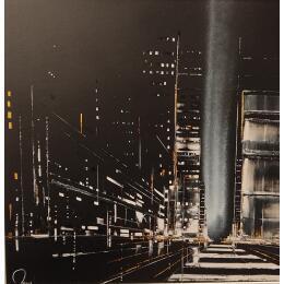 Although he has achromatopsia (absence of color vision), Julien Rey takes us on a journey through his paintings to urban landscapes. Julien Rey's story begins like all great stories: with an impossible dream. With achromatopsia, the artist sees only in black and white. Yet, this condition did not prevent him from traveling to the borders of Burma, from changing his life (he became a Buddhist monk there) or from embarking on art. From his trip to Burma, he brought back a perfect mastery of gold leaf, a characteristic element of his work. His technique based on lacquer worked with a knife and gold leaf inlays places light at the center of his works. Marked by Zen philosophy, he creates minimal compositions that appear as suspended moments, poetic pauses.
