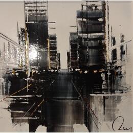 Although he has achromatopsia (absence of color vision), Julien Rey takes us on a journey through his paintings to urban landscapes. Julien Rey's story begins like all great stories: with an impossible dream. With achromatopsia, the artist sees only in black and white. Yet, this condition did not prevent him from traveling to the borders of Burma, from changing his life (he became a Buddhist monk there) or from embarking on art. From his trip to Burma, he brought back a perfect mastery of gold leaf, a characteristic element of his work. His technique based on lacquer worked with a knife and gold leaf inlays places light at the center of his works. Marked by Zen philosophy, he creates minimal compositions that appear as suspended moments, poetic pauses.