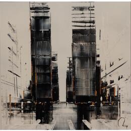 Although he has achromatopsia (absence of color vision), Julien Rey takes us on a journey through his paintings to urban landscapes. Julien Rey's story begins like all great stories: with an impossible dream. With achromatopsia, the artist sees only in black and white. Yet, this condition did not prevent him from traveling to the borders of Burma, from changing his life (he became a Buddhist monk there) or from embarking on art. From his trip to Burma, he brought back a perfect mastery of gold leaf, a characteristic element of his work. His technique based on lacquer worked with a knife and gold leaf inlays places light at the center of his works. Marked by Zen philosophy, he creates minimal compositions that appear as suspended moments, poetic pauses.