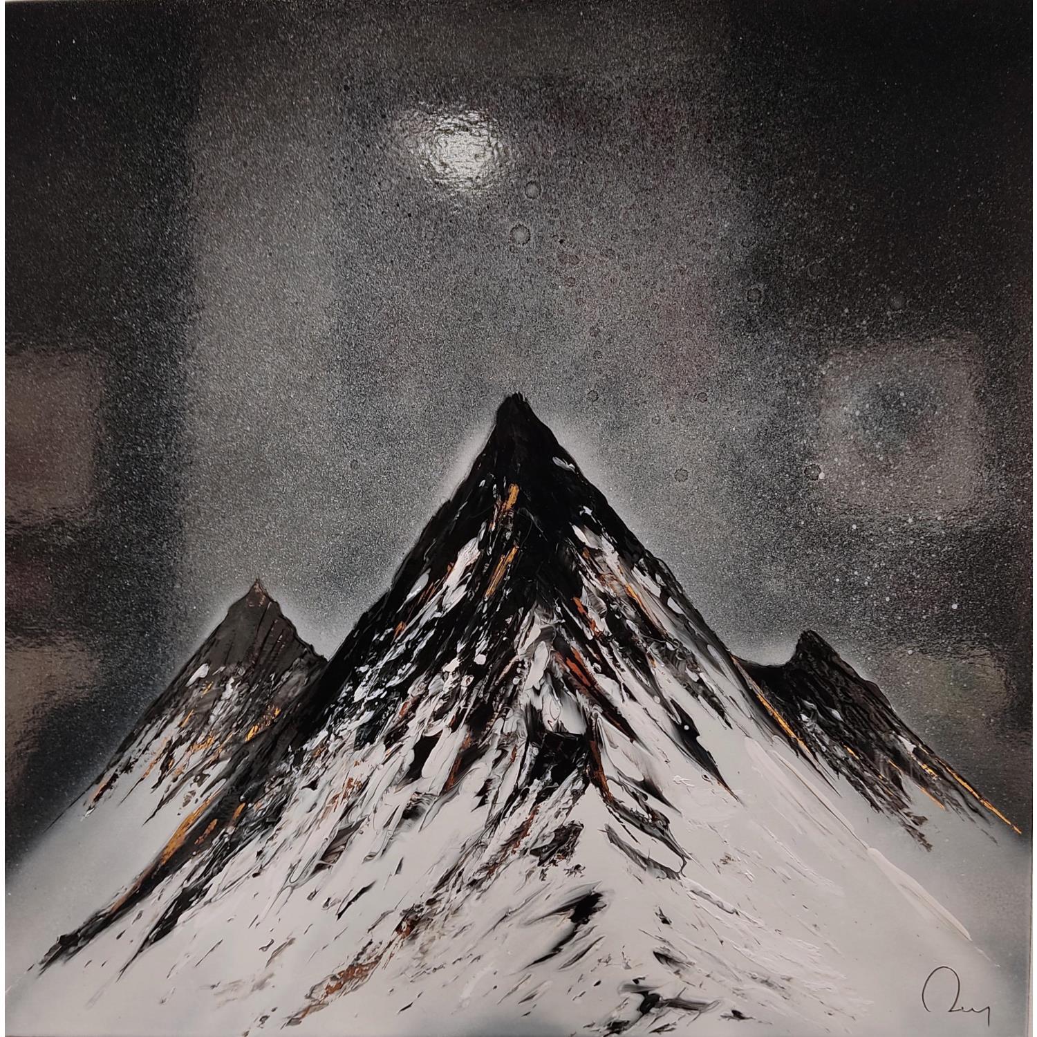 This unique and original contemporary artwork "Montain pass" on the subjects of Nature, Black & White has been created by the contemporary artist Rey Julien.